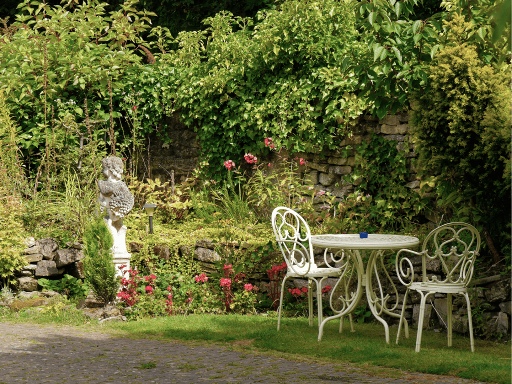 Bogato zelenilo, vijugave staze, cvjetne gredice i dojam prirodnog “raspona” – kao da je vrt sam izrastao iz snova.