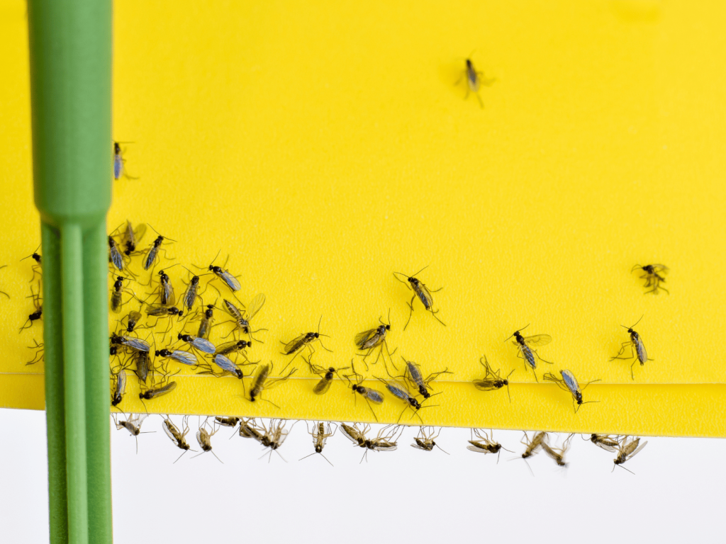 Postavite žute ljepljive pločice uz biljku – one privlače odrasle mušice i smanjuju njihovu brojnost.