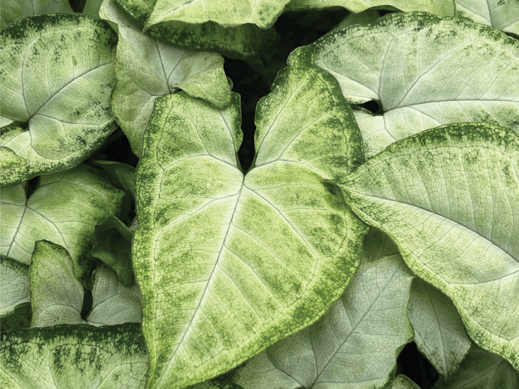 Syngonium podophyllum ‘White Butterfly’ – svijetli listovi s nježnim zelenim rubovima, jedna od najpopularnijih varijanti.