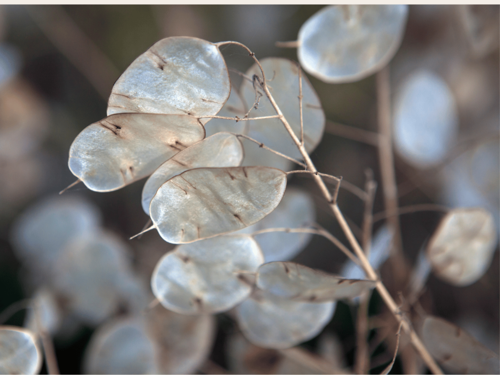 Lunaria annua (Mjesečnica) – Prozirne srebrne kapsule stvaraju elegantan, minimalistički efekt.