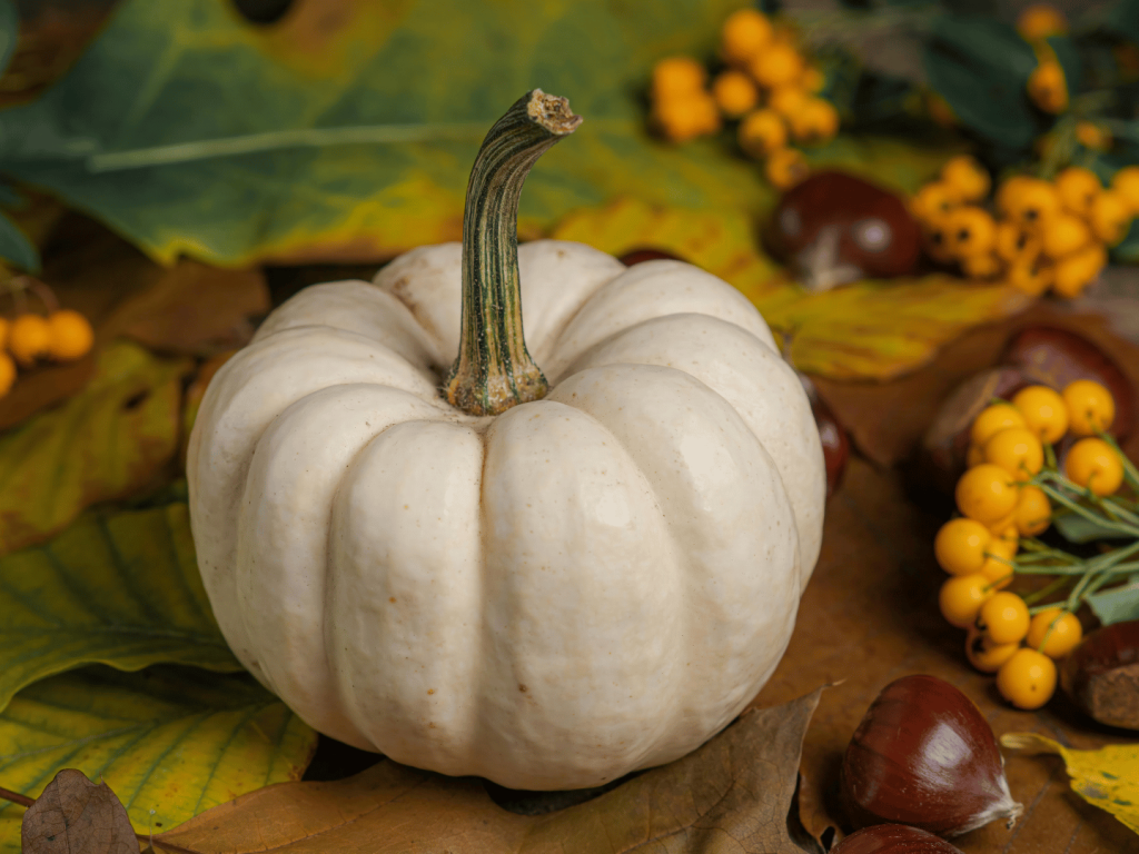 Ghost pumpkin – bijela bundeva, omiljena za ukrase i moderne jesenske dekoracije.